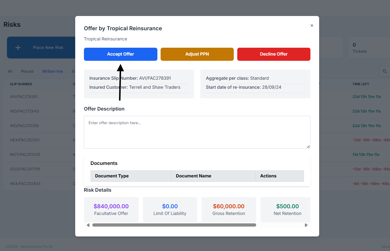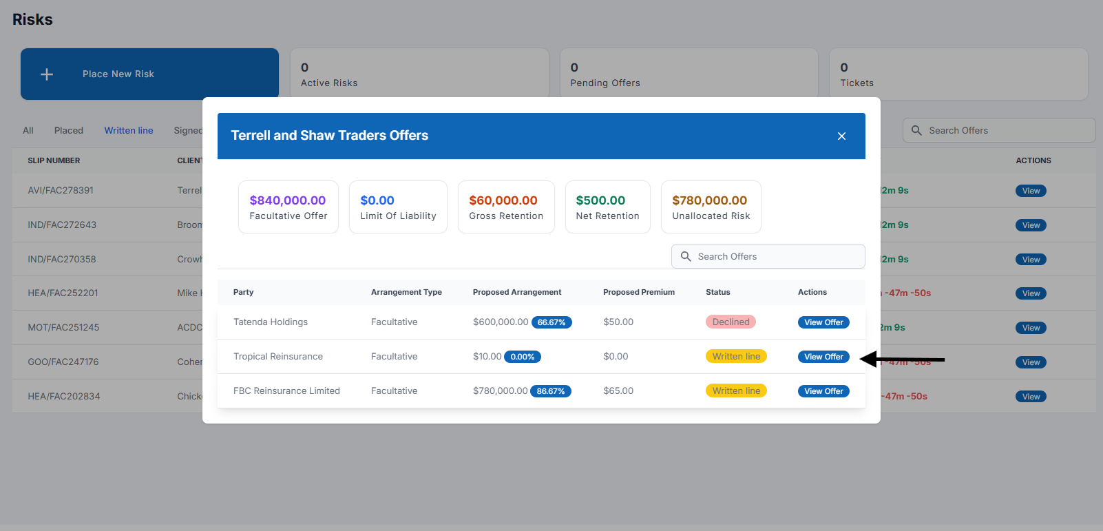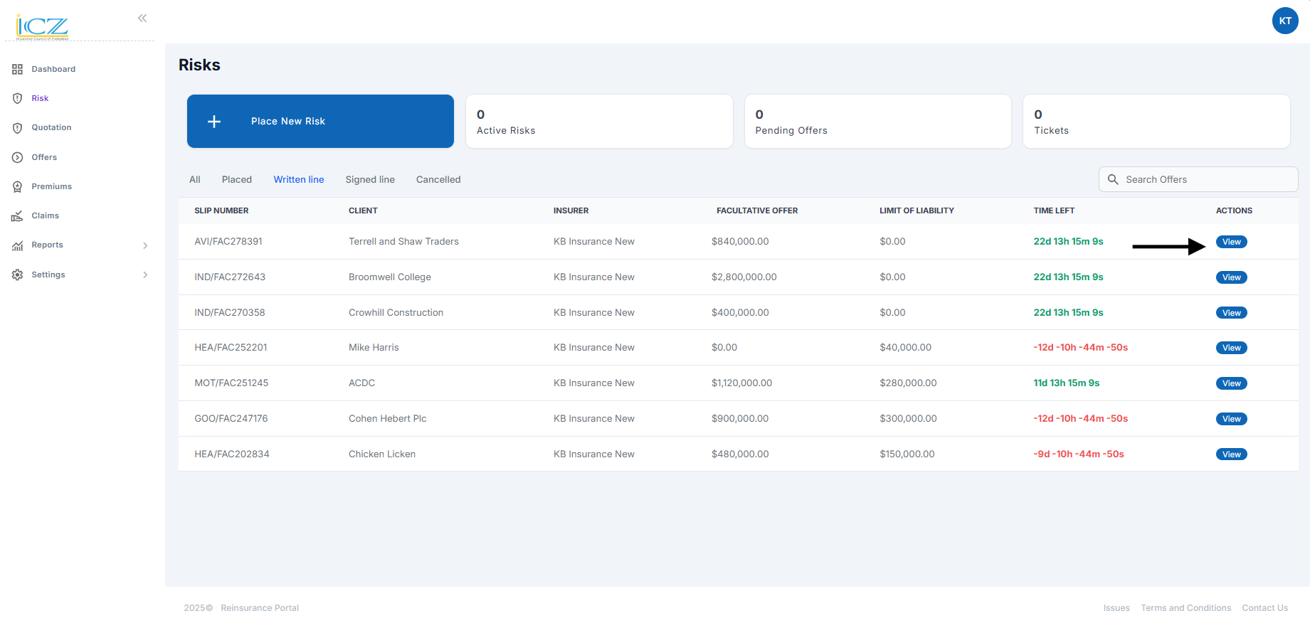 Steps on how to place an offer on a risk / quotation placed Navigate to Risk listing Click on Revie...