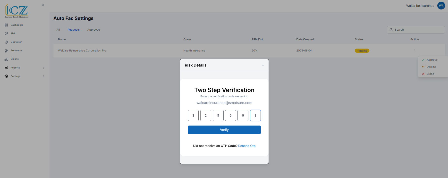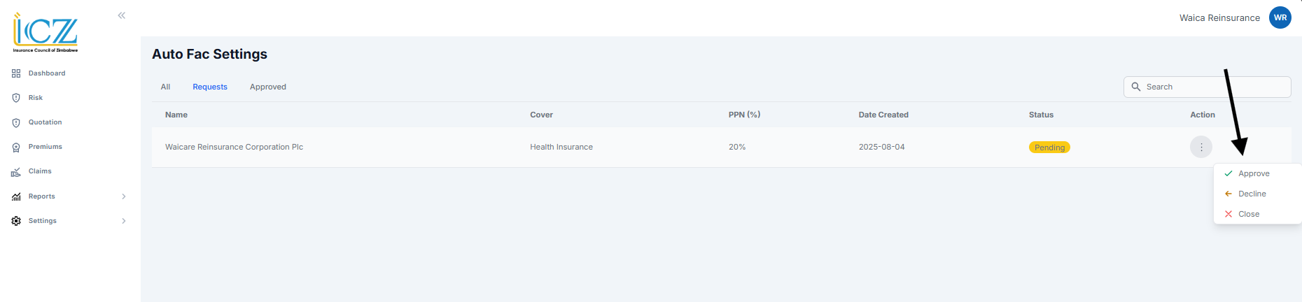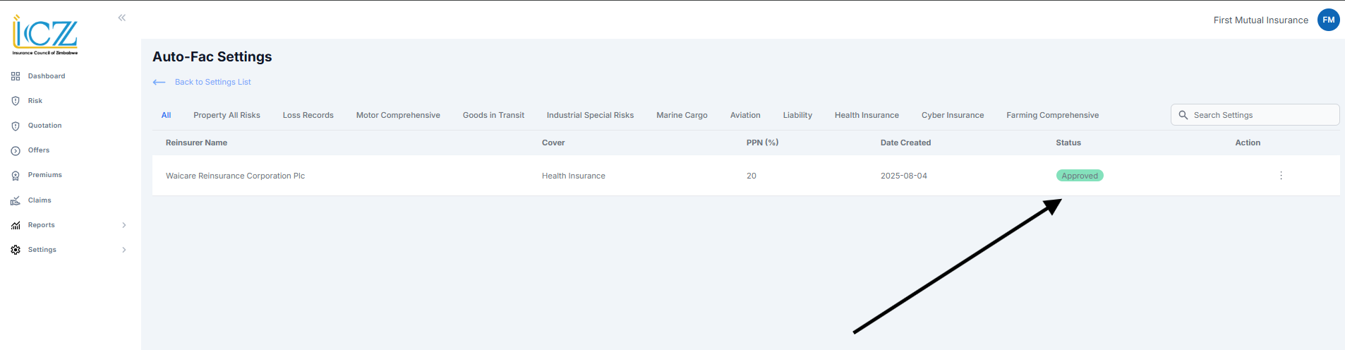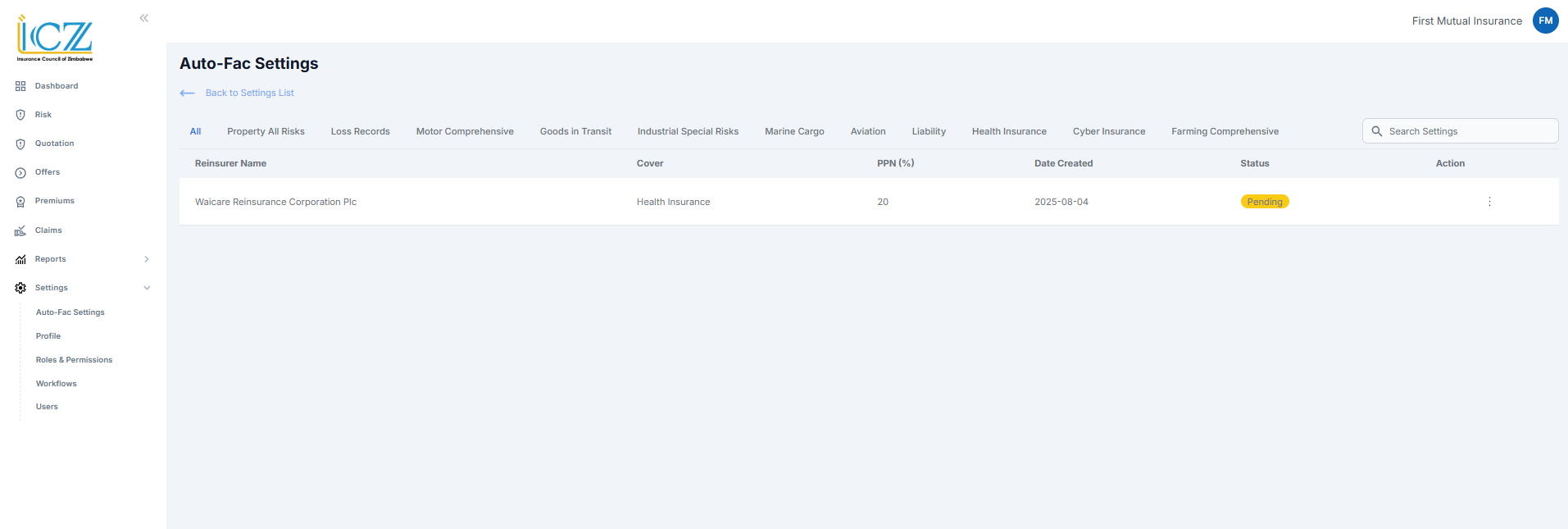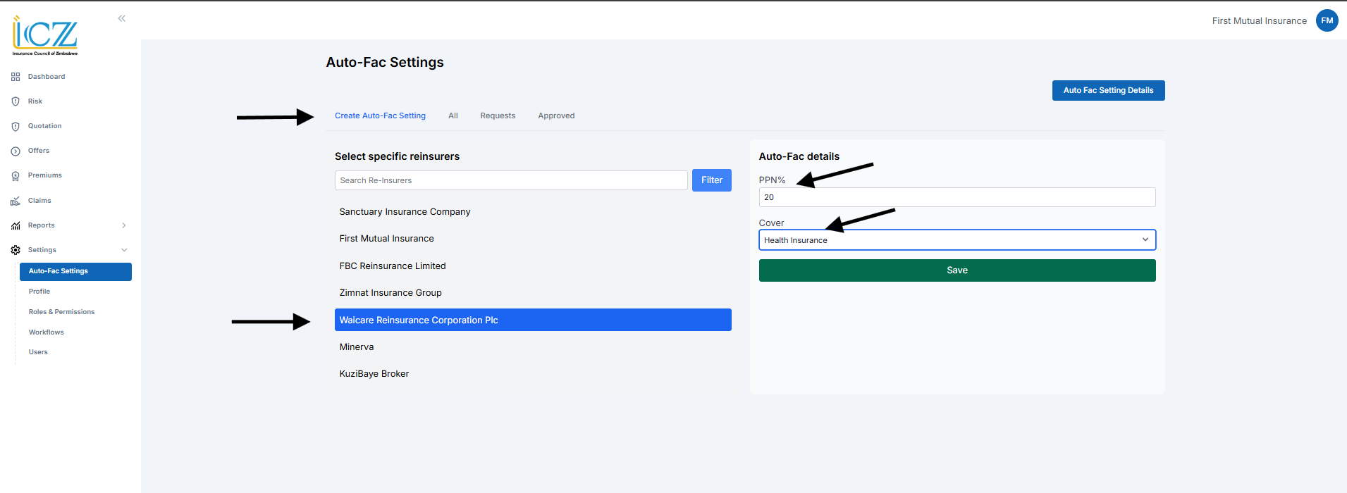 - Stakeholder Navigates to Settings -> Auto-fac Settings
