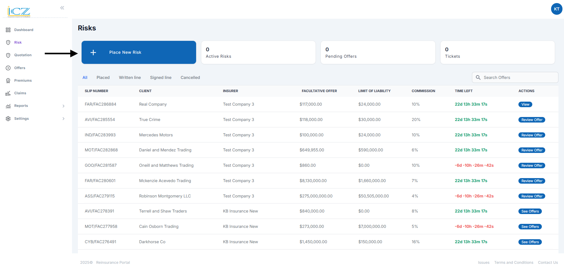 Steps on how to place an offer on a risk / quotation placed Navigate to Risk listing Click on Revie...