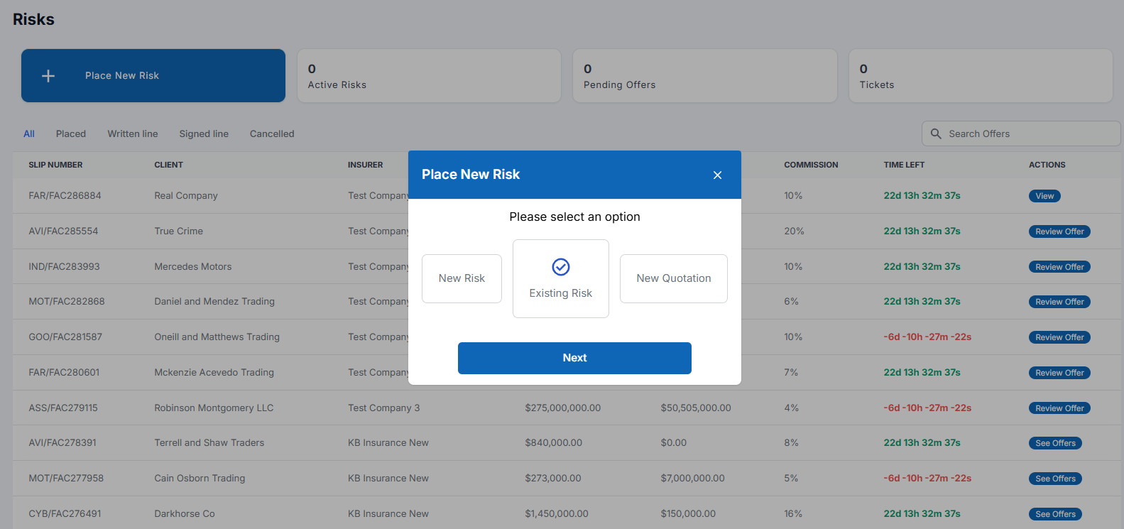 How to Place an Offer on the Risk / Quotation Placed