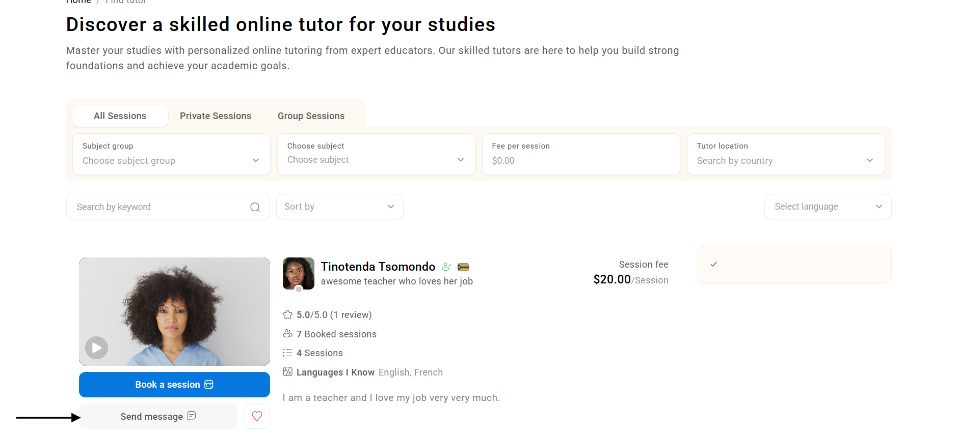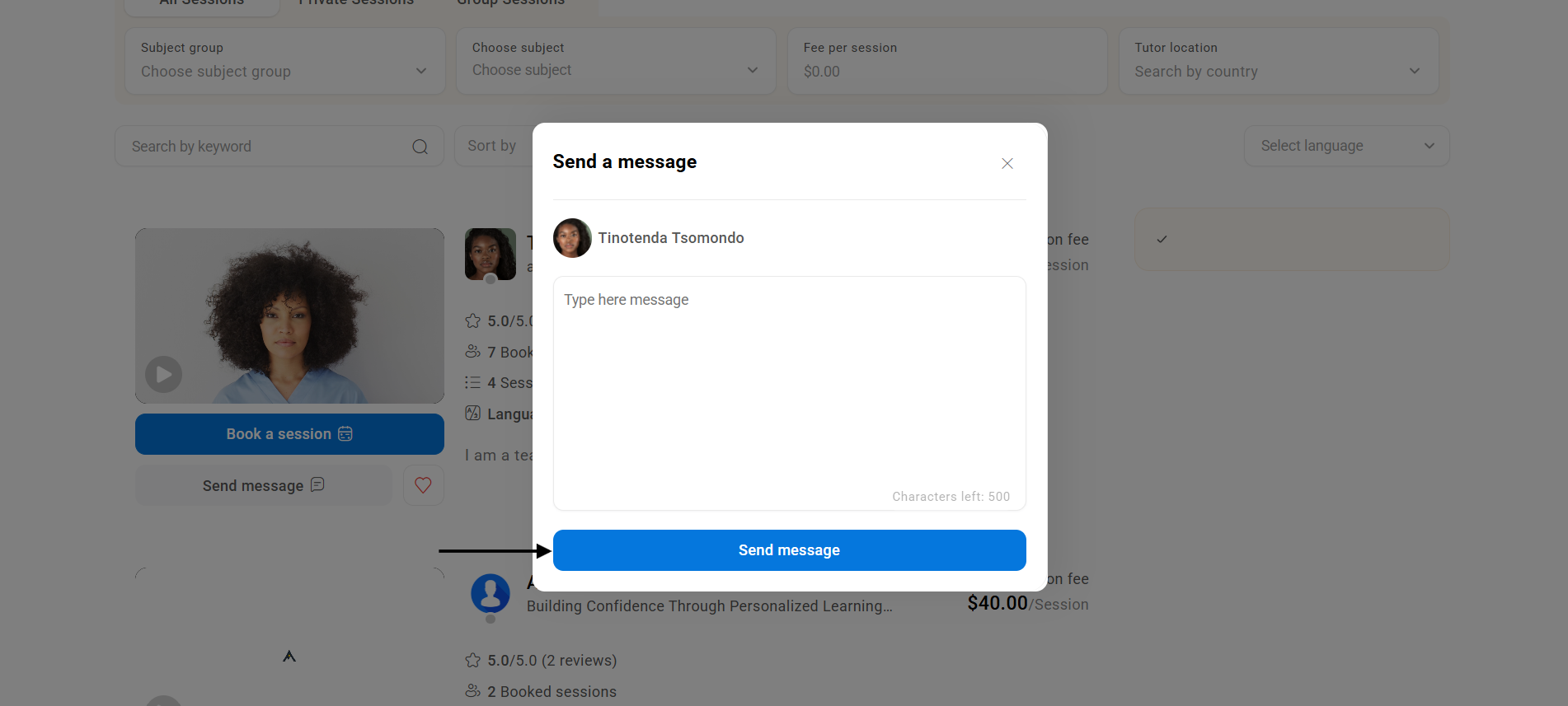 - Click "Send Message" under the tutor's profile