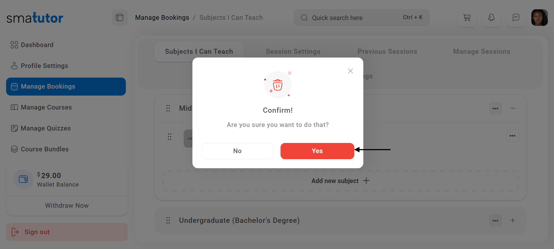 Delete Subject