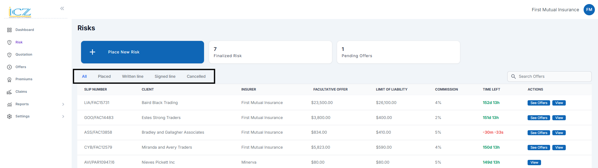 - SIGNED LINE (risk with finalized offers with no unallocated risk)